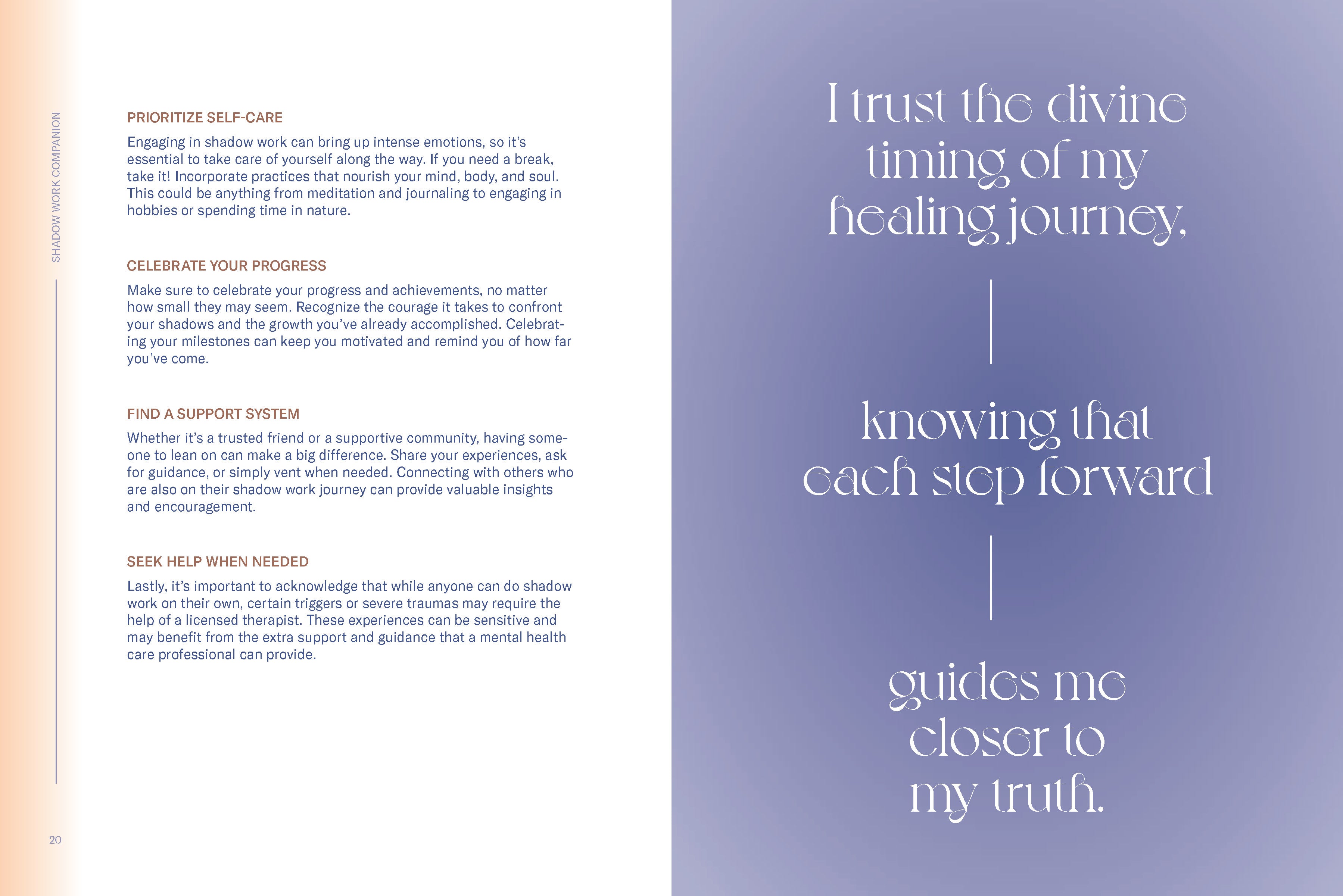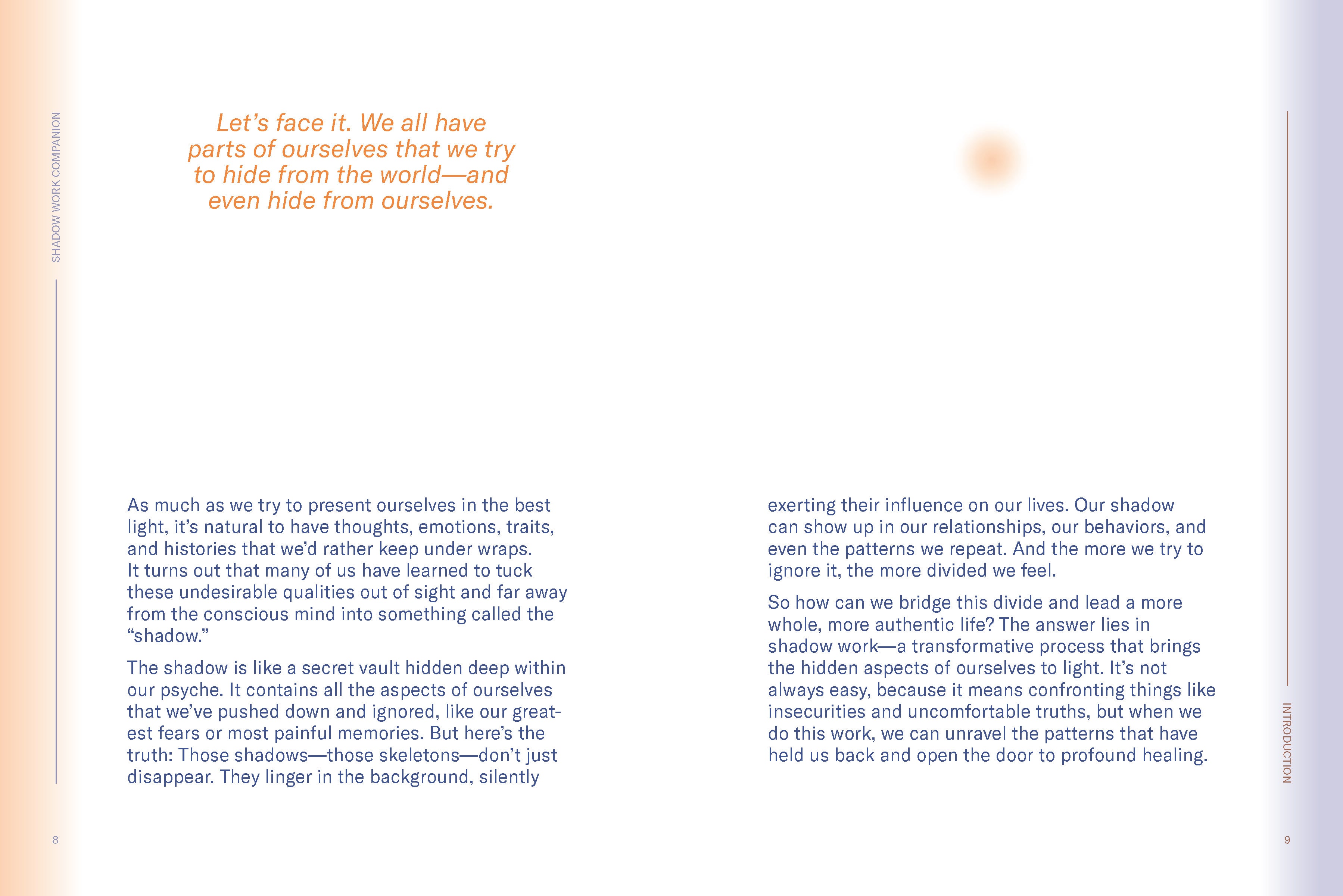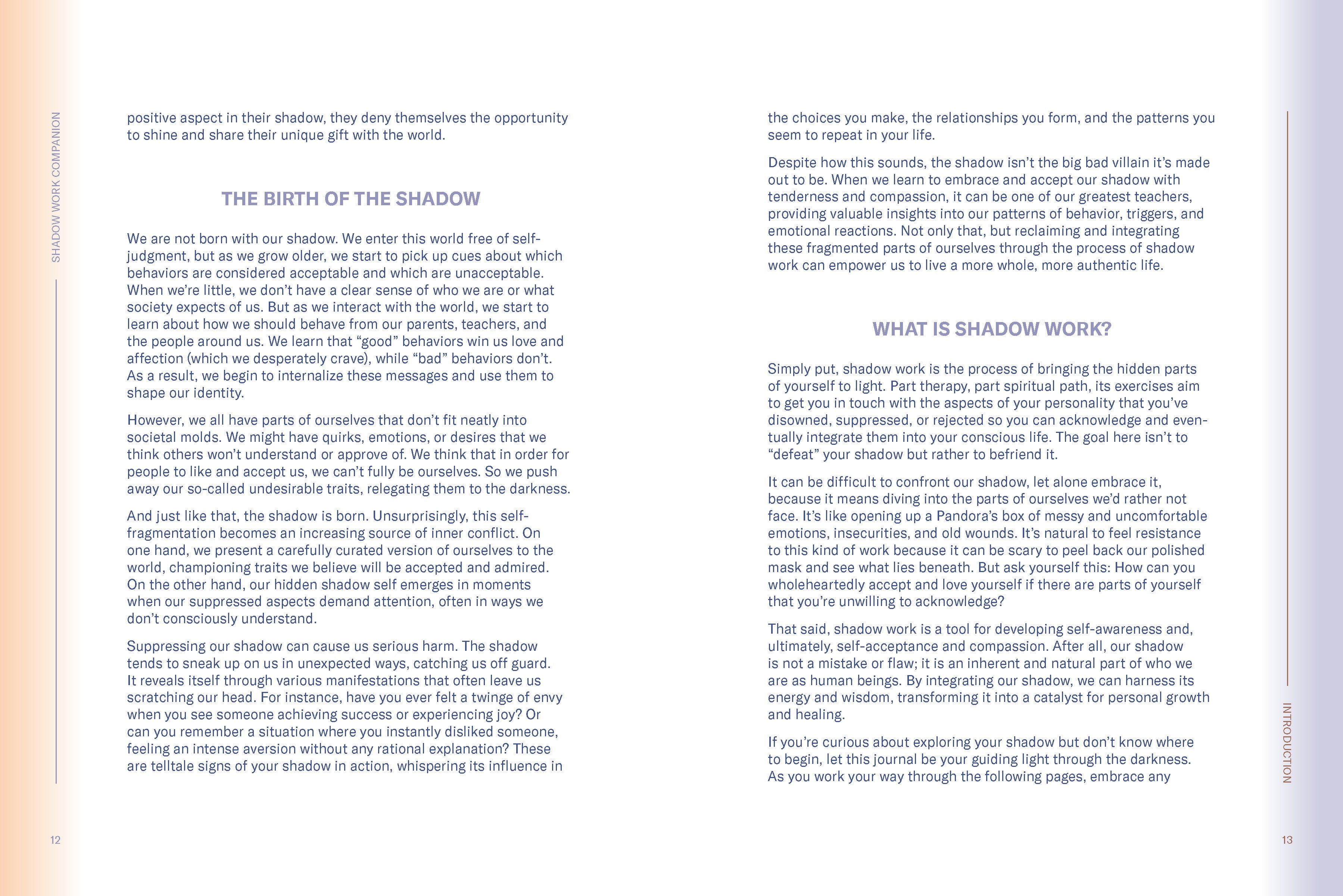 SHADOW WORK MADE EASY: This engaging, interactive format makes shadow work easy to engage with. The simple-to-follow prompts and illuminating information make this a great tool for individuals curious about shadow work but unsure where to start.