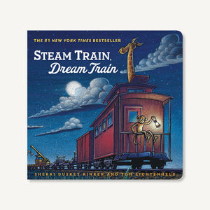 An unabridged board book version of the bestselling hardcover, perfect for small hands: The dream train pulls into the station, and one by one the train cars are loaded: polar bears pack the reefer car with ice cream, elephants fill the tanker cars with paints, tortoises stock the auto rack with race cars, and kangaroos stuff the hopper car with balls (while zebras referee) before settling in for a good night’s sleep.