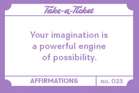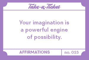 AFFIRMATIONS ANYTIME: Welcome to your pep talk in a box! Take a ticket and receive an uplifting message whenever you need it.