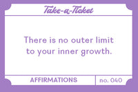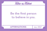 THOUGHTFUL GIFT: A gift that can be there when we can't be, Take A Ticket: Affirmations offers gentle love and support to friends and family,near or far.Give the box to a stressed-out student or someone preparing for a career change.Drop a ticket in a care package, enclose one in a card, or keep one in your wallet to consult when life throws you a challenging curveball.