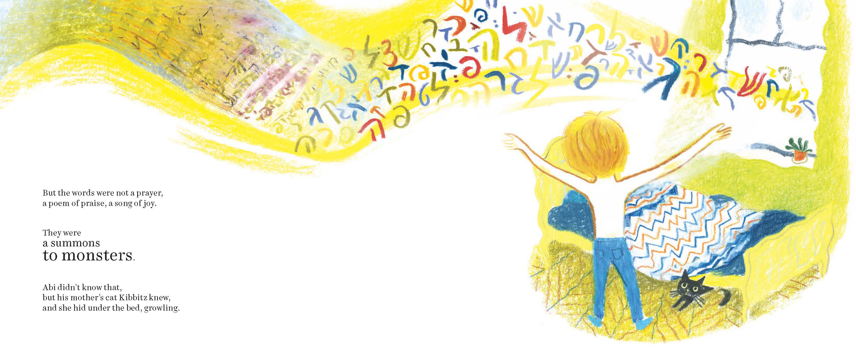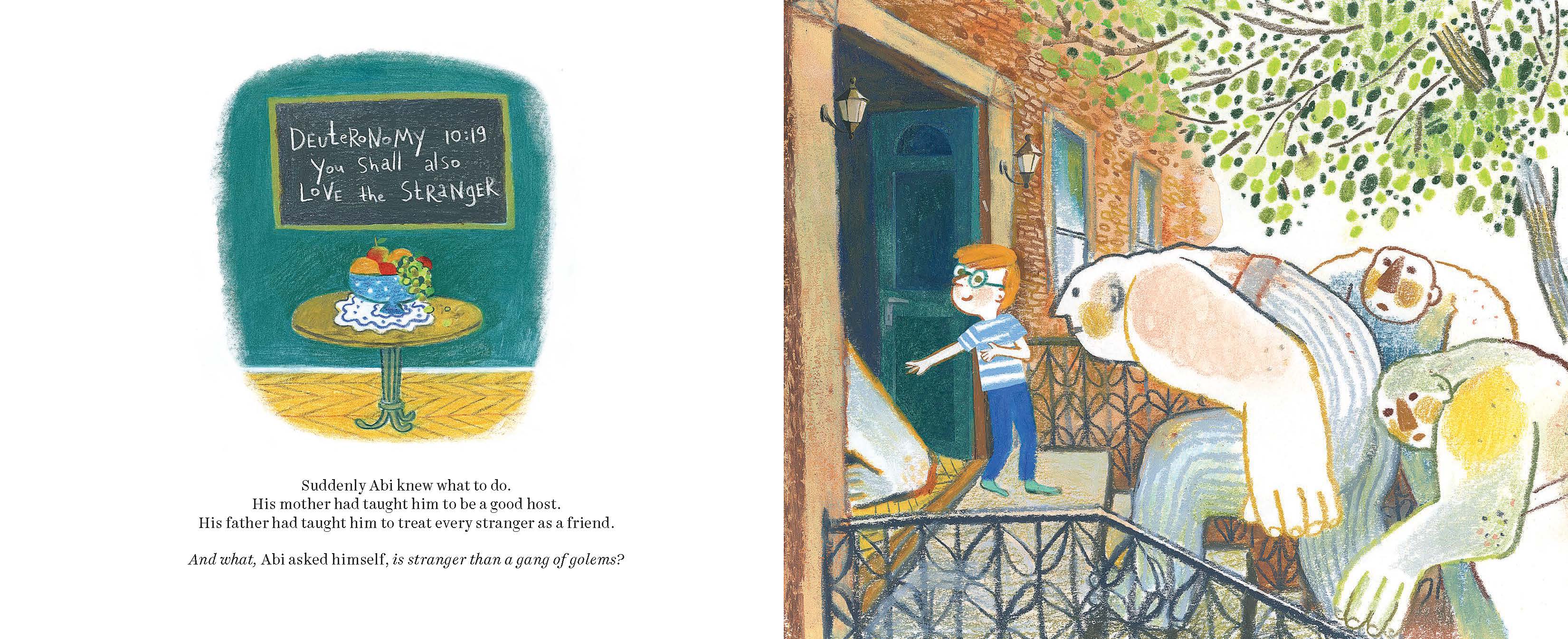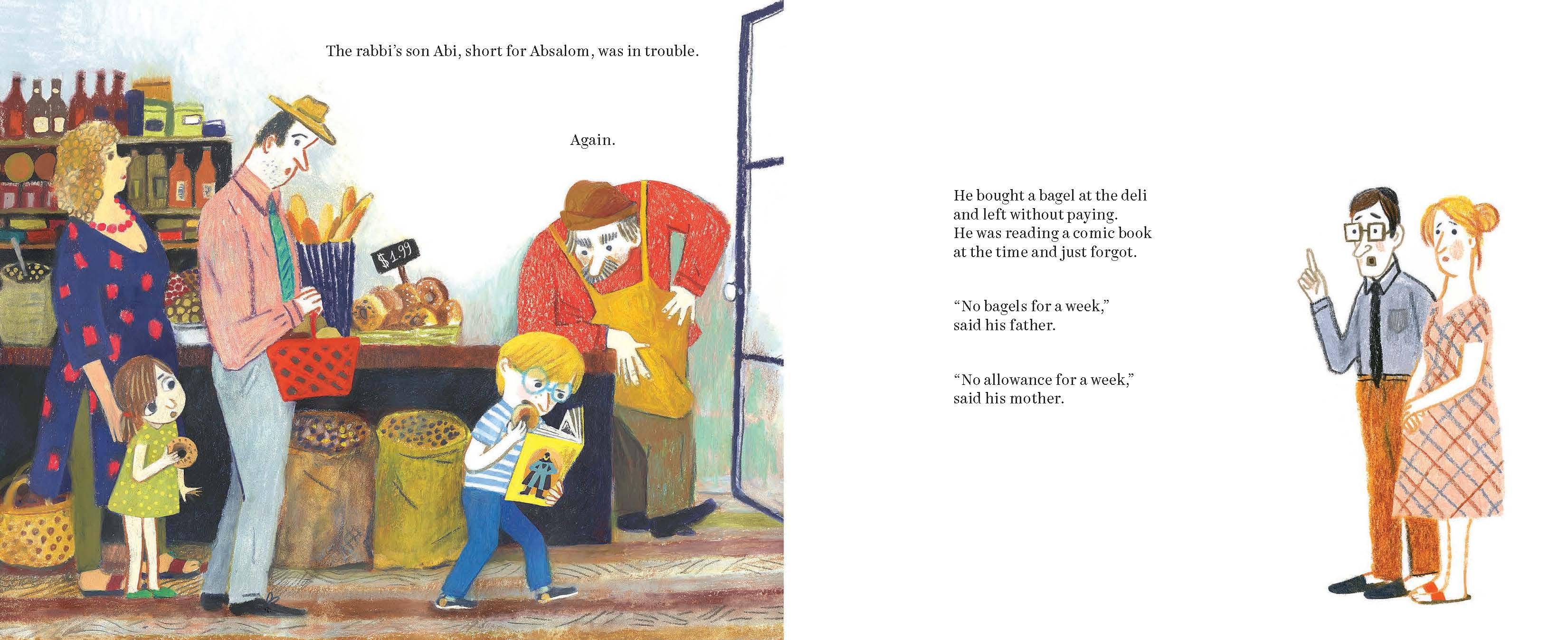 The rabbi’s son, Abi, has a habit of getting in trouble. It’s not on purpose, and usually, they’re harmless accidents. But this time, Abi has stolen a scroll from the synagogue—to practice his Hebrew!—and is not ready for what, or rather, who will show up at his front door as a result.