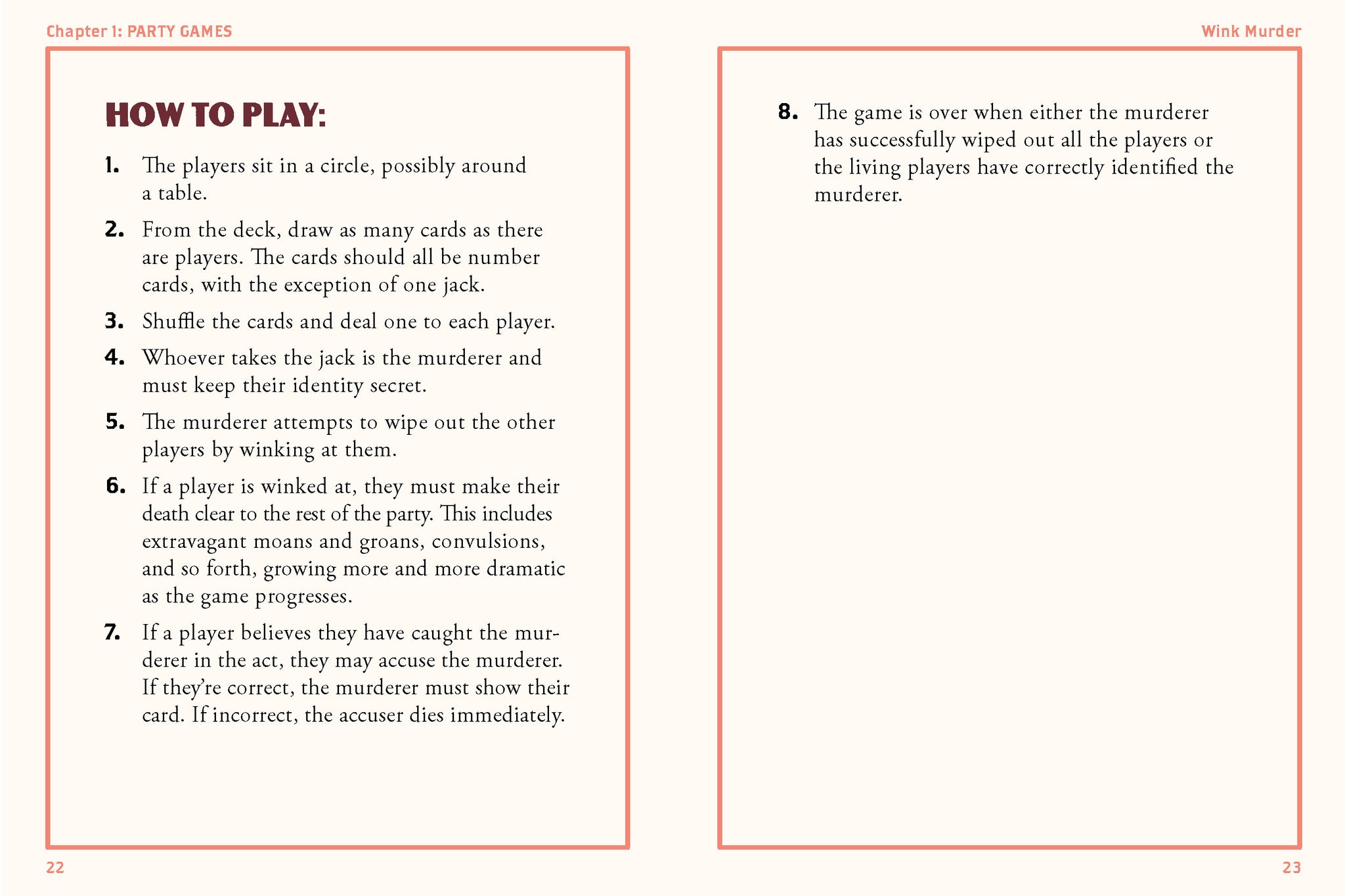 Victorian Parlour Games is a beautifully designed and compact hardcover volume full of the classic, often silly, games played in the late 19th century. The Victorians loved fun and played hundreds and hundreds of party games. This endlessly delightful party games book collects some of the very best for your reference and pleasure.