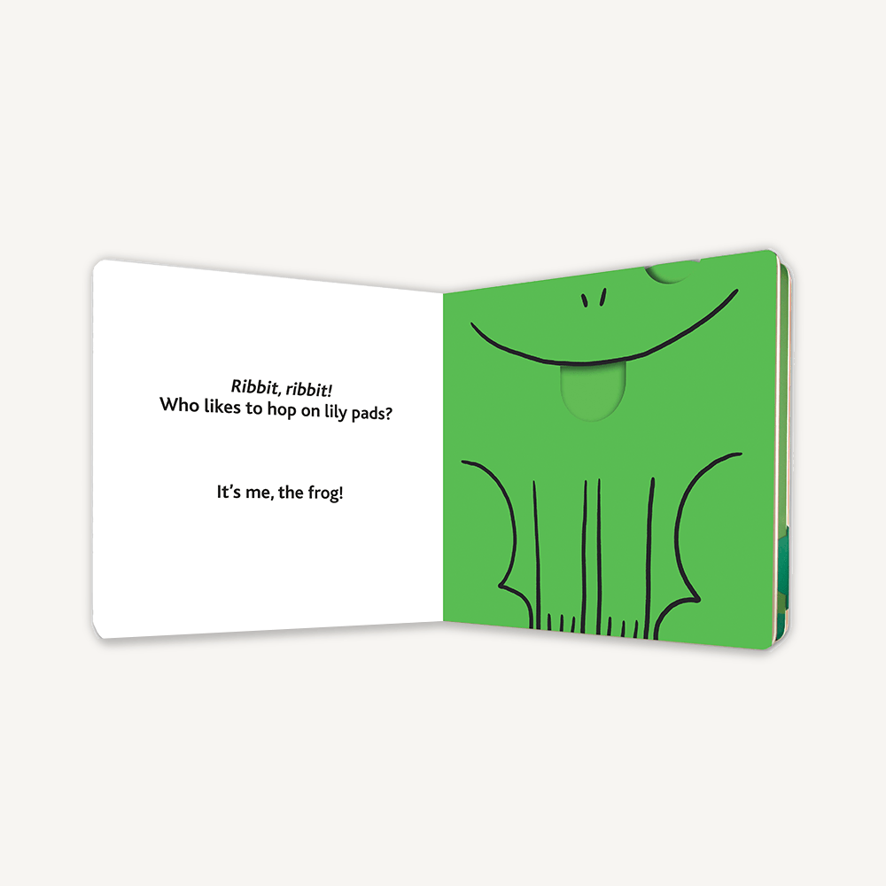 Hoo, hoo! Ribbit, ribbit! Yip, yip! Little ones will enjoy discovering the animals that appear in this visually dynamic and engaging pull-tab book. Tabs reveal ears, eyes, noses, mouths, and even tongues of the 10 special creatures. And children will be delighted with the sweet surprise at the end, when a baby animal makes a special appearance!