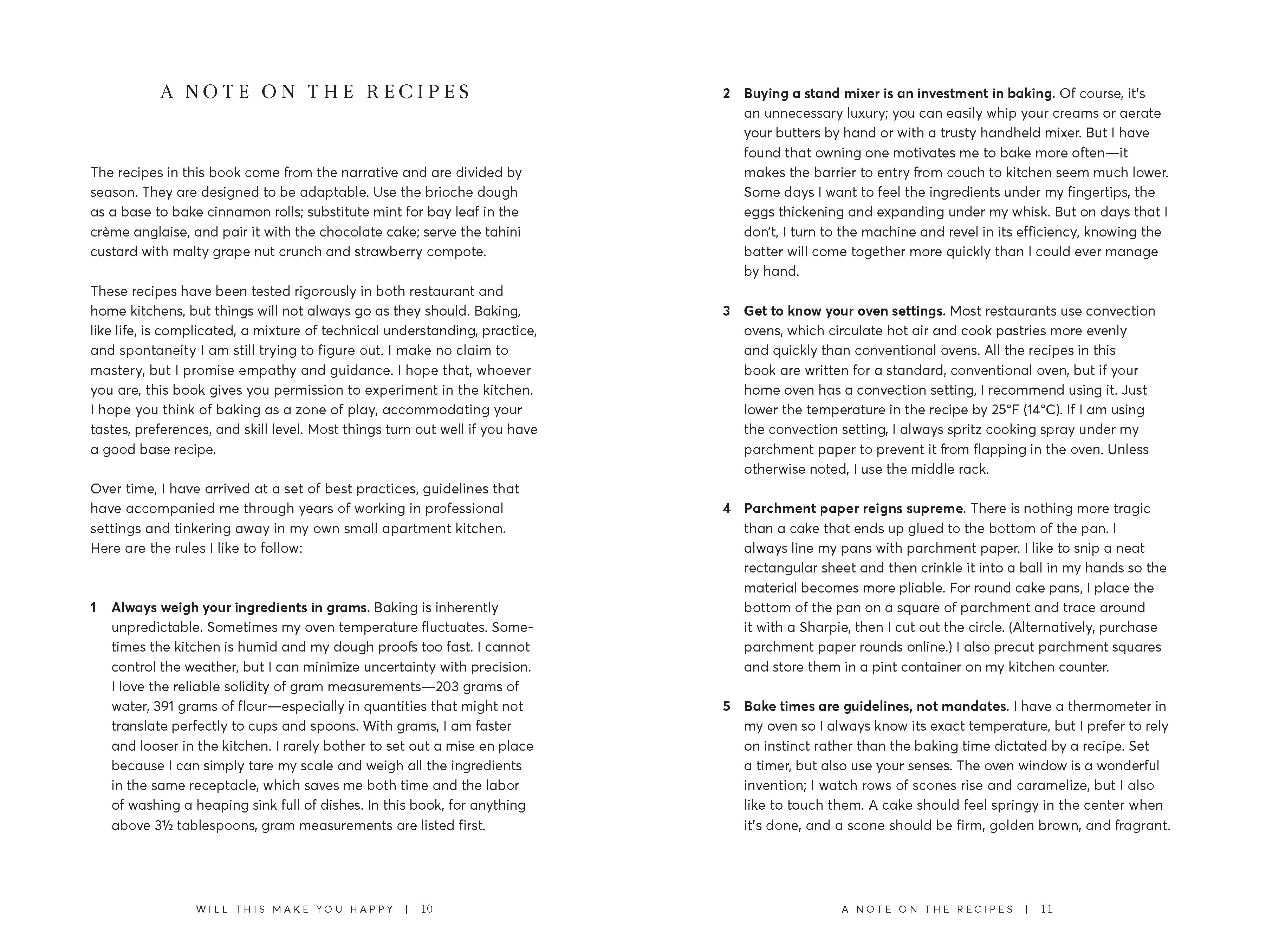 FLEXIBLE RECIPES: The recipes in the book are designed to be mixed, matched, and adapted to the season. Whether you’re a new baker or an improvisational one, Will This Make You Happy encourages play and experimentation. Featuring recipes for Neapolitan Pavlova, Hojicha Tiramisu, Blueberry Jam Corn Muffins, Dark Chocolate and Toasted Coconut Birthday Cake, Cardamom Crullers, and more.